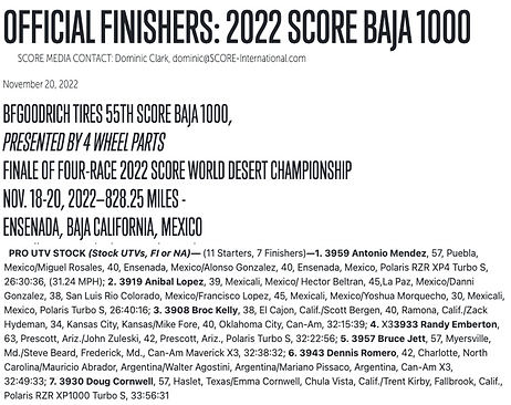 En el año 2021 tiene su primer competencia para poco después en 2022 competir en la Baja 500 obteniendo el 5to lugar y en el mismo año obtuvo su primer campeonato en la Baja 1000.